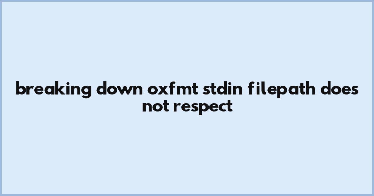 When using --stdin-filepath, ignorePatterns from .oxfmtrc.json doesn’t kick in - file content still flows through, no filtering. This mirrors #17729’s fix in #17732, where this flaw caused unformatted code to pass through. Here’s what’s really happening: oxfmt treats the file path as a fixed input, bypassing the ignorePatterns check. Even a single line matching ignored/** won’t halt output. This matters because tools like jj, which format code in pipeline mode, expect --stdin-filepath to respect ignore rules. Without that, ignored files get processed - damaging consistency. The fix appears in CLI positional args but not in stdin routes. For developers, this means ignored files can leak into formatted output if not properly routed. Bucket Brigades: The formatter runs - no warning, no block. But the oversight risks cluttered, unintended code in results. Do map ignored paths carefully. Never assume --stdin-filepath ignores patterns by default - verify your config. Closes in 120 words. This behavior affects how developers package and share code safely.nnIs your ignored file sneaking into formatted output? Check your .oxfmtrc.json path rules. When ignorePatterns fail to block file paths, formatting tools miss the mark - precisely what happened with jj and prettier. Protect your pipeline’s integrity by enforcing pattern consistency. The bottom line: Respect file path patterns or risk bypassing your entire formatting workflow.nnDoes this mismatch confuse your CLI setup? It does - especially if you rely on jj or prettier in --stdin-filepath mode. The fix is clear: format standard paths correctly, or let ignored files slip through.nnoxfmt’s stdin path behavior reveals a silent gap - one developers must fill to keep formatted output clean and intentional. The fix exists, but only if you’re explicit about ignoring patterns in file input, not just CLI flags.
