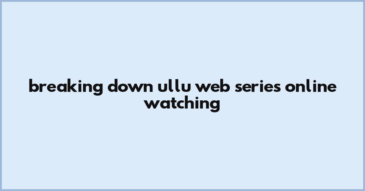 Breaking Down Ullu Web Series Online Watching