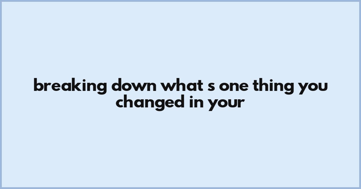 Breaking Down What's One Thing You Changed In Your