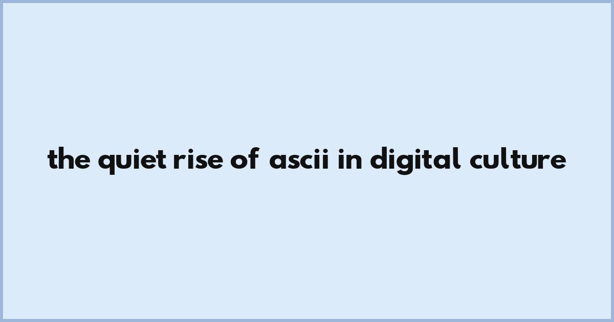Contributes to a growing fascination with ASCII - once a relic of early computing, now resurfacing in digital culture as a deliberate act of simplicity. Amid noise-driven scrolling and AI-generated visuals, people are rediscovering the charm of characters like ☺️ and ✨ not as code, but as quiet statements. This isn’t just nostalgia - it’s a quiet rebellion against digital overload, a way to communicate with intention.