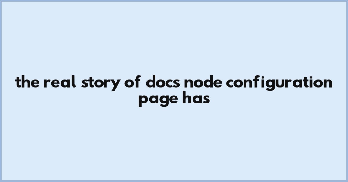 The Real Story Of Docs: Node Configuration Page Has